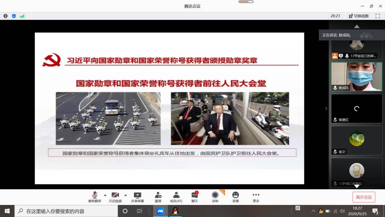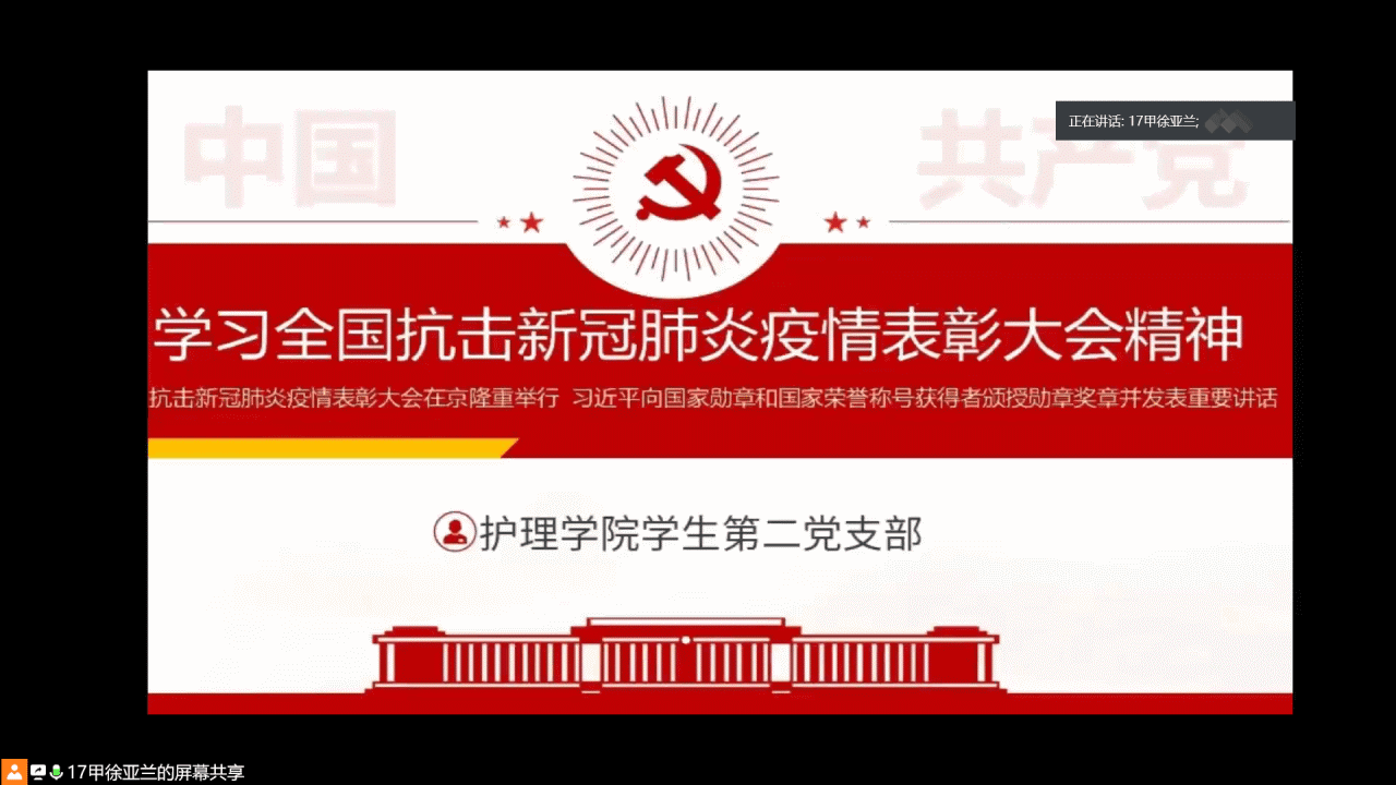 为了深入学习贯彻习近平总书记在全国抗击新冠肺炎疫情表彰大会上的重要讲话精神,9月25日,williamhill中国官网入口员工第二党支部组织全体党员通过腾讯会议开展了政治理论学习活动,活动由党支部组织委员徐亚兰主持。