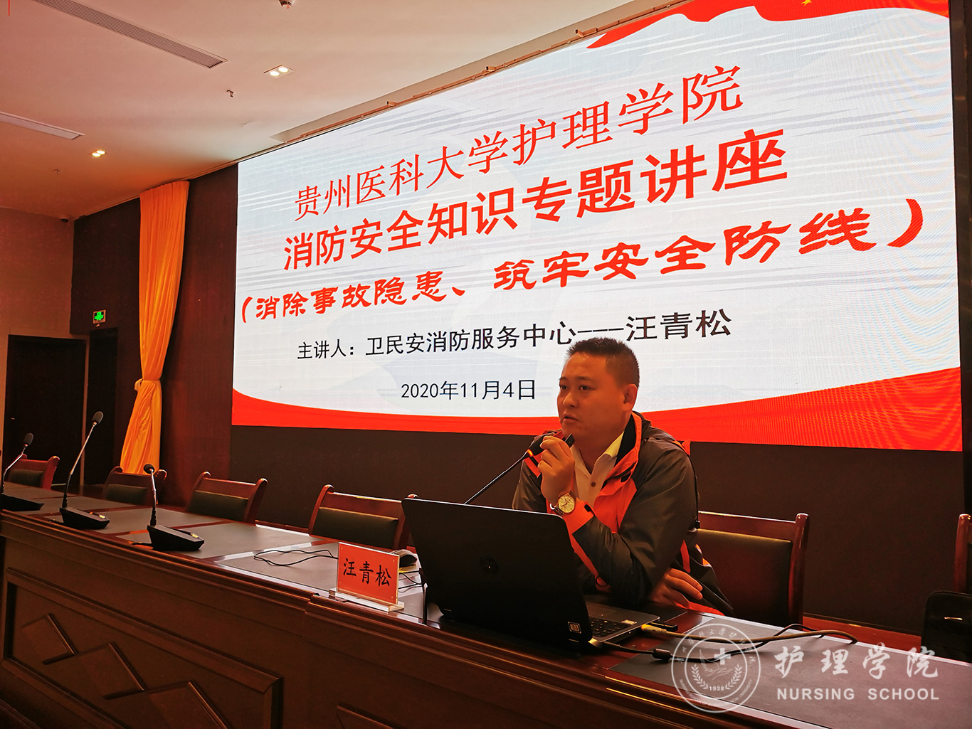 为进一步提高全体师生的消防意识和应急反应能力, 11月4日,williamhill中国官网入口在南校区道德讲堂开展了“消防安全宣传月”主题党日活动。本次活动特别邀请了贵阳卫民安消防知识宣传中心宣教部汪青松主任为williamhill中国官网入口全体教职工和员工做了《消防安全知识专题——消除事故隐患,筑牢安全防线》讲座。活动由教职工党支部张仁莉同志主持。