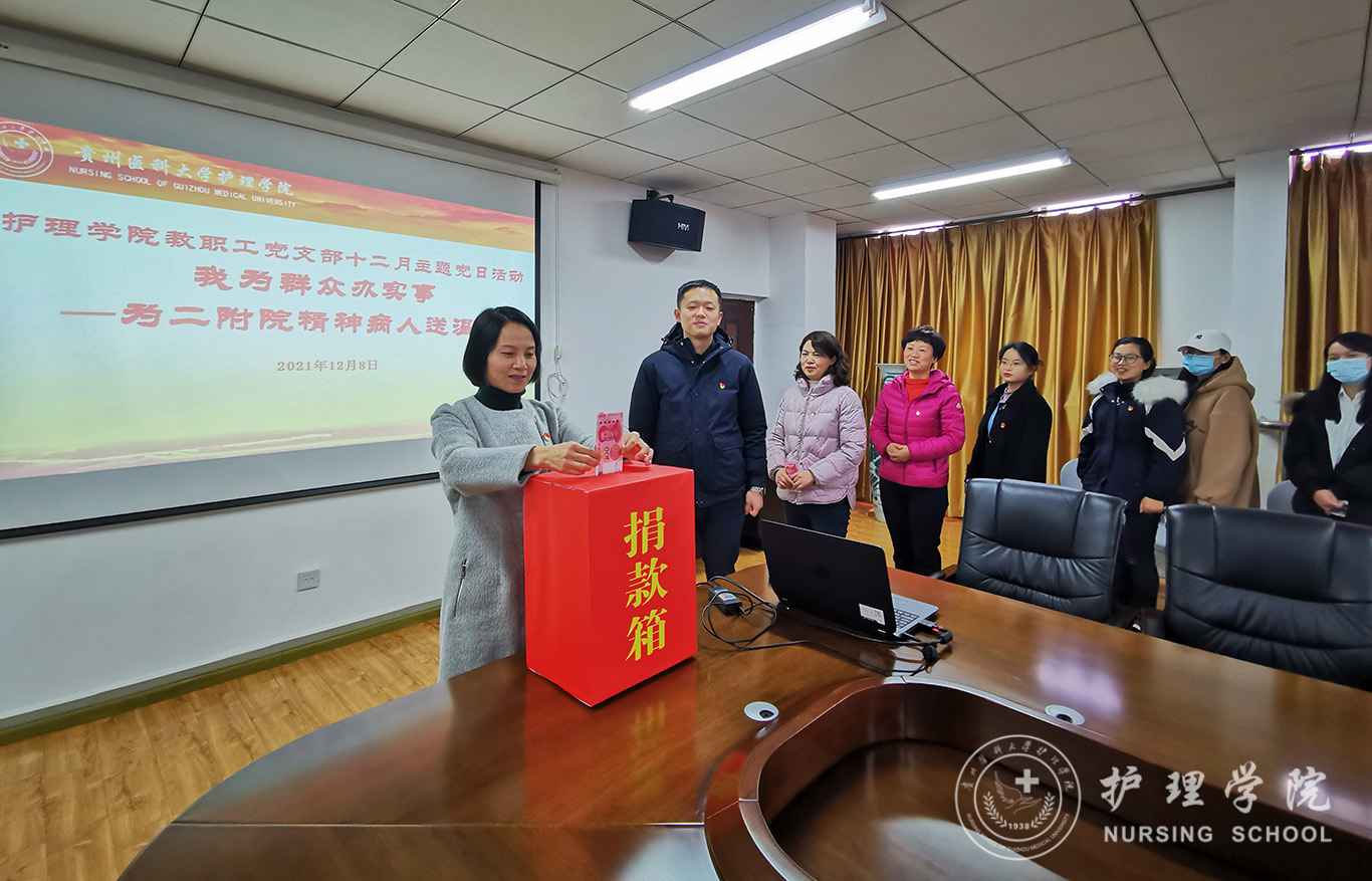 本次主题党日活动分为两个部分。第一项是开展“我为群众办实事”——送温暖活动。公司教职工党支部在了解到第二附属医院精神科部分病人因为没有监护人缺乏过冬衣物后,组织教职工党员积极捐款捐物帮助该科室解决问题。经统计,共计捐款3850元及衣物若干,所捐款项将用于为困难精神病人购买冬鞋。