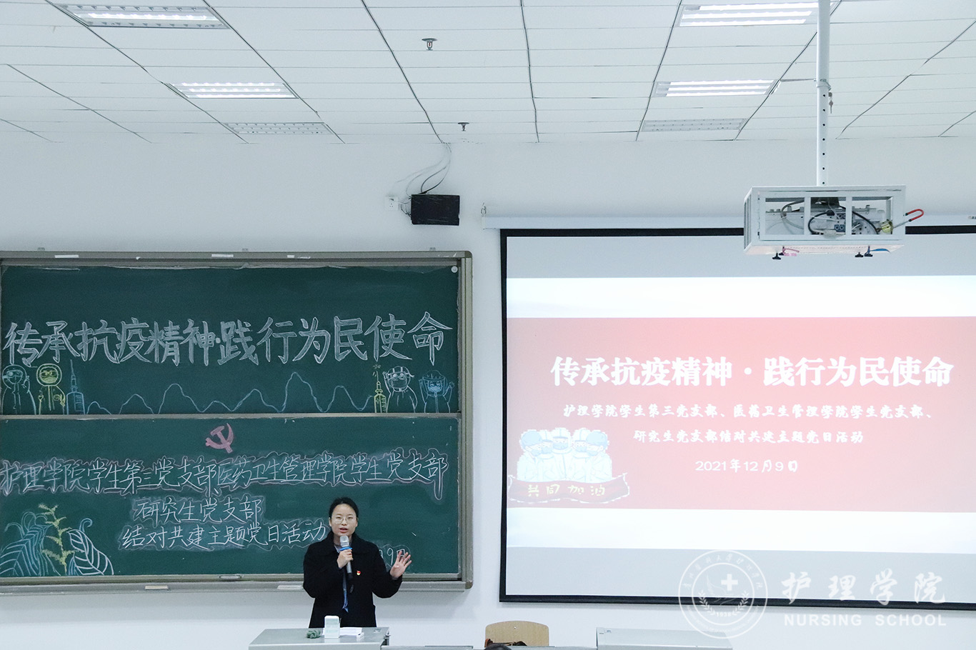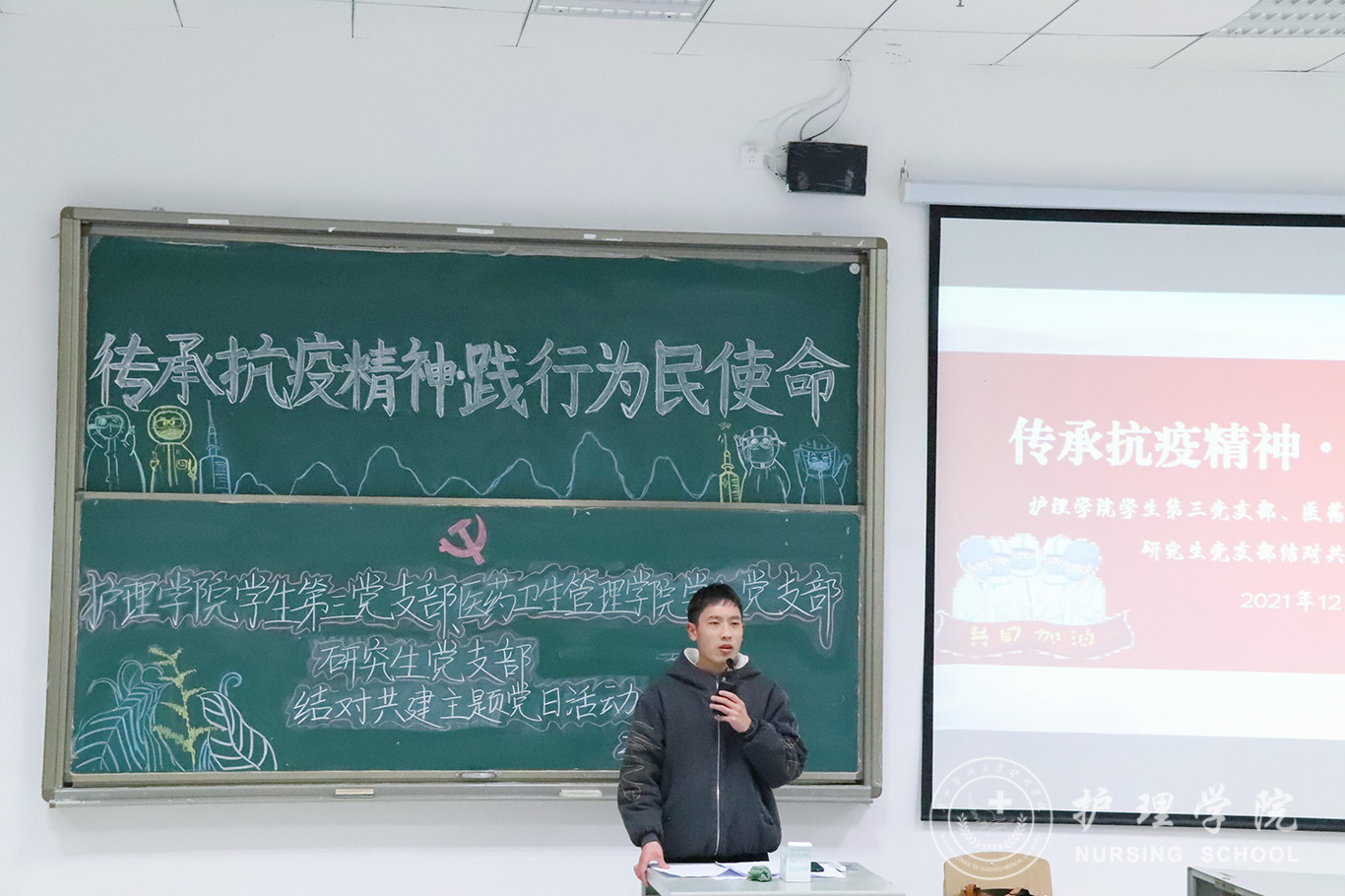 为深入落实党史学习教育,积极开展支部共建,以建促改,以建促进,加强党员同志的时代责任感,williamhill中国官网入口员工第三党支部、医药卫生管理公司员工党支部于12月9日在南校区7202教室开展“传承抗疫精神、践行为民使命”支部共建活动。williamhill中国官网入口员工第三党支部书记刘妍主讲,医药卫生管理公司员工党支部宣传委员李卫主持,全体支部党员参与活动。