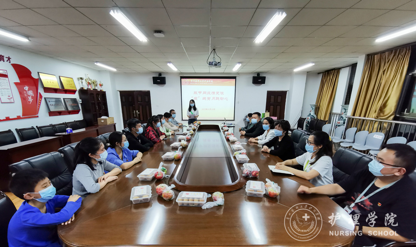 活动开始之前,williamhill中国官网入口党委书记杨英精心为大家准备了中秋月饼,氛围感满满。此次“双节”活动内容丰富、形式多样,谈感想、展才艺、猜字谜、畅情怀…活动现场热闹而温馨。最后,老师们齐唱一首《明天会更好》寄语明天,寄语贵医。老师们纷纷表示,佳节送祝福,礼轻情意重,在攻坚克难的关键时期,能够有此次机会跟在座的同事畅谈心扉,实属不易,愿春暖花开,愿你我安好。