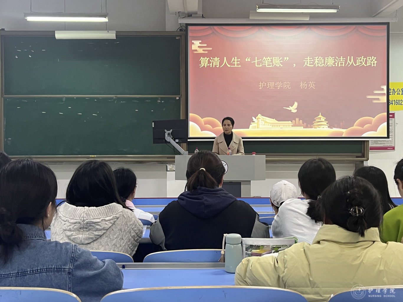 杨英结合实事例子,讲述了年轻干部应当清算好政治账、经济账、名誉账、家庭账、友情账、自由账、健康账,扣好廉洁从政的第一粒扣子,树立不负人民的家国情怀,追求高尚纯粹的理想境界,努力成长为对党和人民忠诚可靠、堪当时代重任的栋梁之才,在新时代新征程上留下无悔的青春足迹。