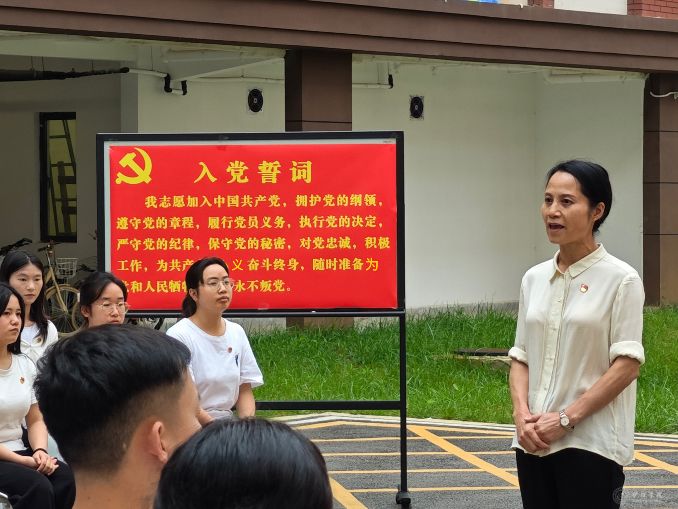 活动中,公司党委副书记兼纪委书记何为带领新发展党员面向党旗庄严宣誓,以铿锵有力的宣誓声表达了对党的无限忠诚和为共产主义事业奋斗终身的坚定决心。随后,党委员工工作部(员工处、武装部)嘉宾及公司教师党员代表为新发展党员佩戴了党员徽章,新发展教师党员代表袁明、员工党员代表朱月成分别作了表态发言。公司党委书记杨英对新发展党员表示了衷心的祝贺,她指出,全体新发展党员要坚定理想信念,在攻坚克难中磨砺专业本领,在深学细悟中增长知识才干,做一名在学习和工作中充分发挥先锋模范作用的合格党员,在实现第二个百年奋斗目标的历史伟业中贡献自己的智慧和力量。