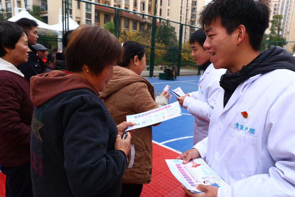活动过程中,师生党员有序开展血压血糖检测、健康科普等服务,针对老年群体高发的高血压、糖尿病、脑卒中等疾病,细致解读检测结果,讲解疾病预防、饮食调理及日常护理要点,互动氛围热烈。此次活动既为居民提供了便捷专业的服务,提升了老年群体健康管理意识,也锤炼了师生党员的责任担当。