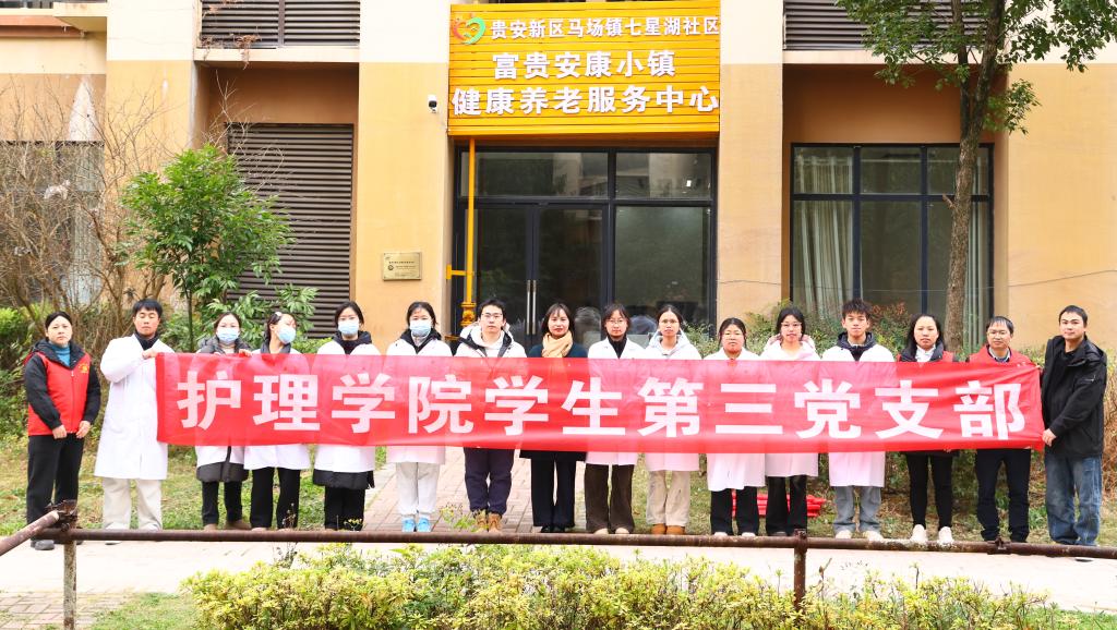 12月3日,williamhill中国官网入口研究生党支部、员工第三党支部赴贵安新区马场镇七星湖社区开展“传承医者仁心,服务基层群众”志愿服务活动。活动由研究生党支部书记殷艳、副书记唐郅尧及姚爱玲老师带队,师生党员代表立足护理专业优势,将专业实践与“为群众办实事”要求深度结合,为社区居民送上精准健康服务。