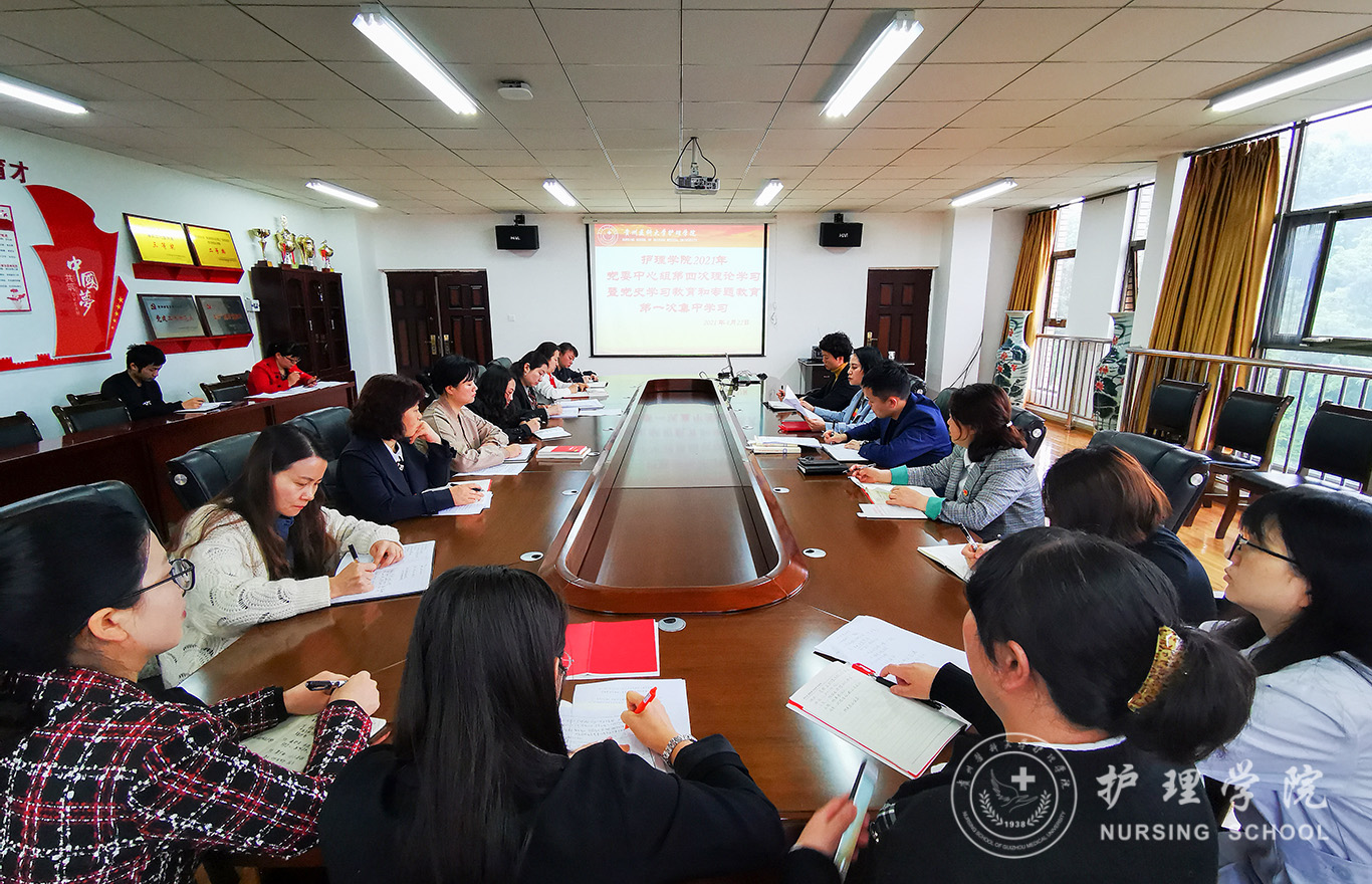 杨英以《风正扬帆正当时、初心如磐向未来》为题作中心发言,她强调以习近平总书记重要讲话精神作为一切工作的根本遵循,以“高质量”努力实施“党建+教学”“党建+科研”“党建+育人”三大党建引领工程。随后正科级组织员曾敏、分团委副书记王晓玲、内科护理学教研室副主任晏家芳作学习交流发言。