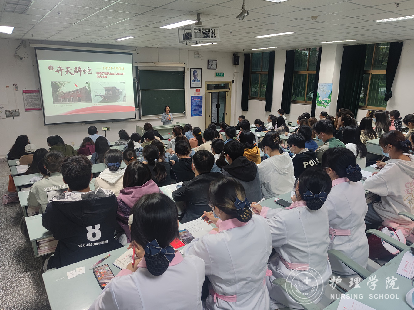 首先,杨英围绕“百年求索,铸就辉煌”“精神血脉,薪火相传”“继往开来,接续奋斗”三个主题,结合中国共产党历史的重大事件,深入浅出地讲述了我国经历了开天辟地、改天换地、翻天覆地、惊天动地这四个重要的发展历程。杨英强调,一代人有一代人的使命,一代人有一代人的担当。青年正是实现中华民族伟大复兴的生力军,要不忘初心、勇挑重担。