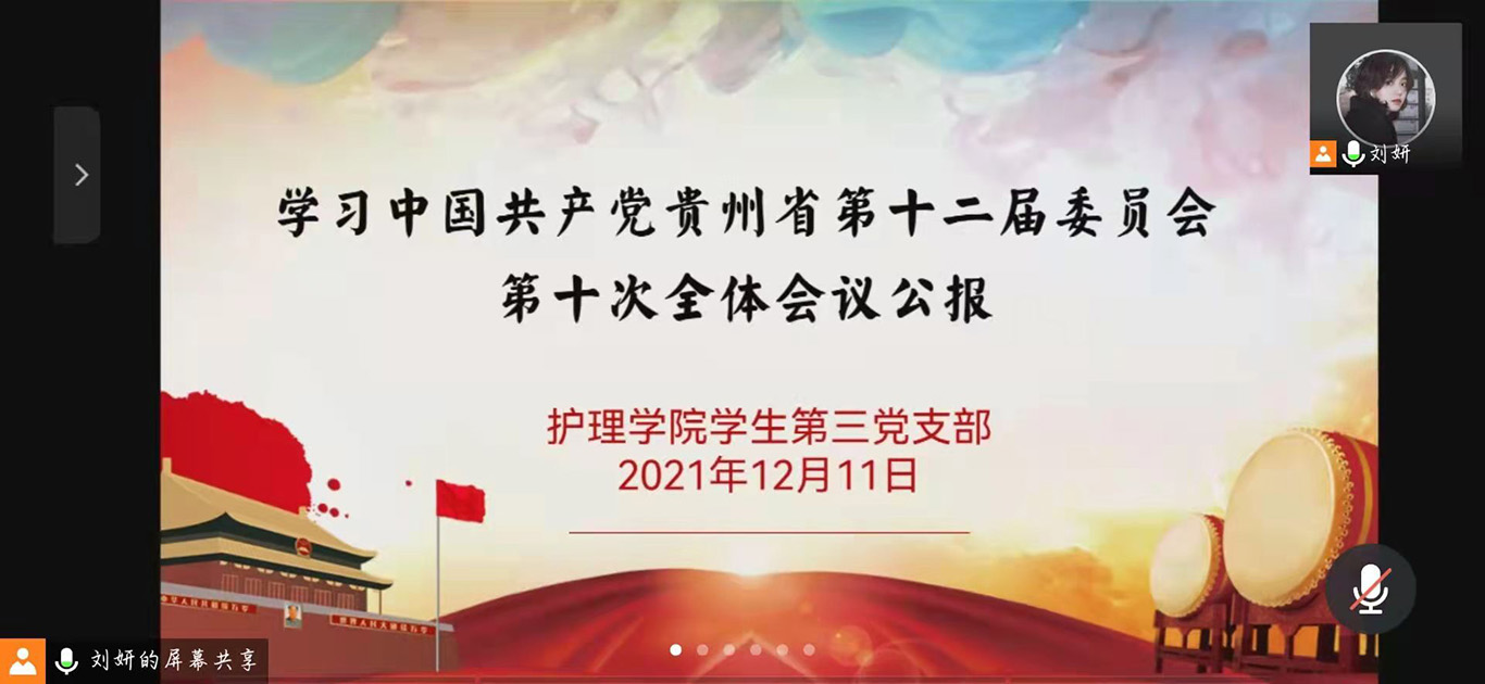 首先刘妍对中共贵州省委十二届十次全会召开情况进行介绍,带领全体党员对《中国共产党贵州省第十二届委员会第十次全体会议公报》(以下简称《公报》)进行学习。刘妍强调,全体党员同志应积极响应《公报》号召,更加紧密地团结在以习近平同志为核心的党中央周围,衷心拥护“两个确立”、忠诚践行“两个维护”,大力弘扬伟大建党精神,勿忘昨天的苦难辉煌,无愧今天的使命担当,不负明天的伟大梦想,以史为鉴、开创未来,埋头苦干、勇毅前行,奋力开创百姓富、生态美的多彩贵州新未来,以优异成绩迎接党的二十大胜利召开!