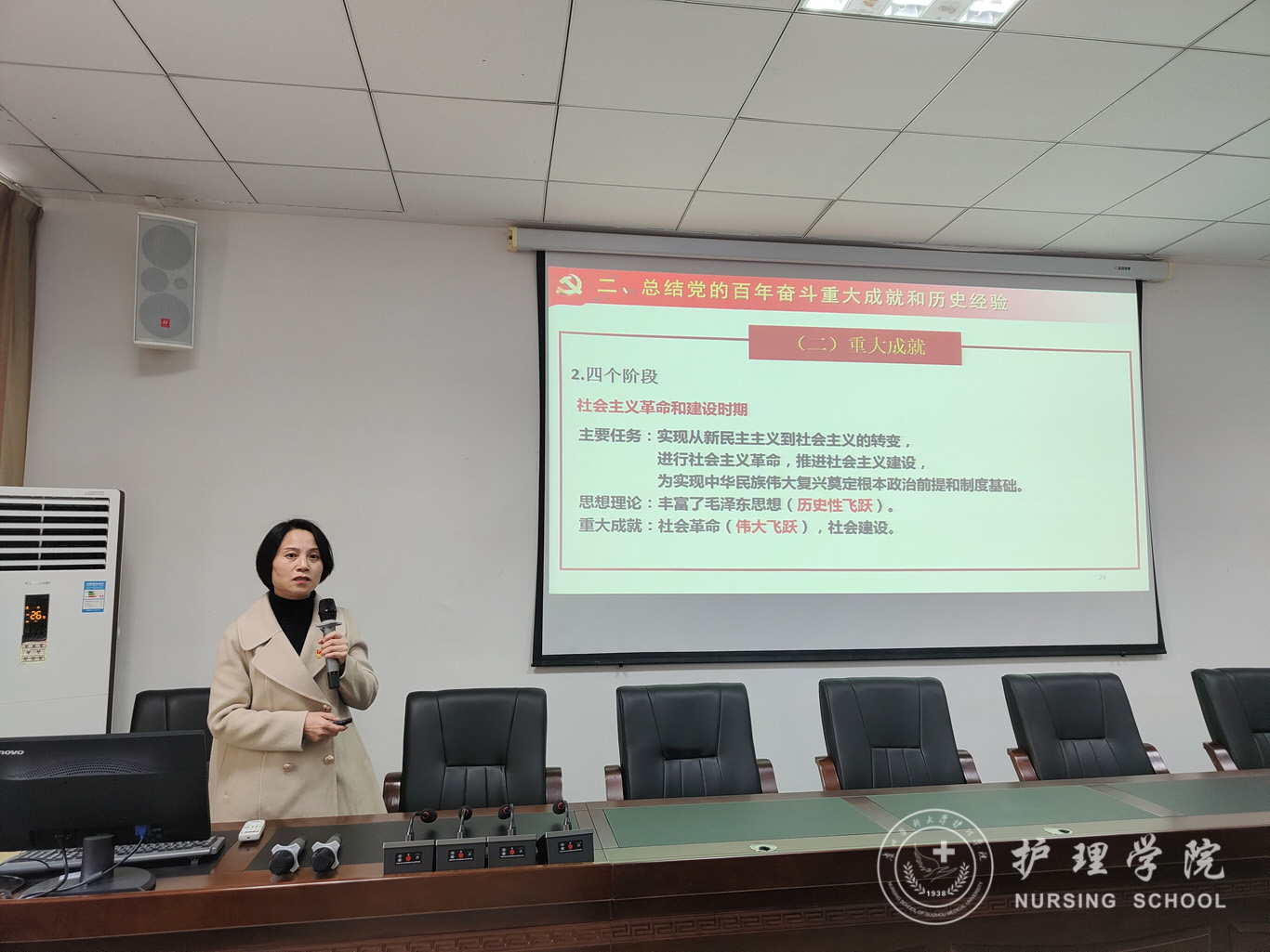 随后,williamhill中国官网入口党委书记杨英以“勿忘昨天、无愧今天、不负明天”为主题为两院师生党员做了党的十九届六中全会精神宣讲。杨英强调,党的十九届六中全会的召开是具有历史性意义的重要会议,我们要更加紧密地团结在以习近平同志为核心的党中央周围,以咬定青山不放松的执着奋力实现既定目标,以行百里者半九十的清醒不懈推进中华民族伟大复兴。