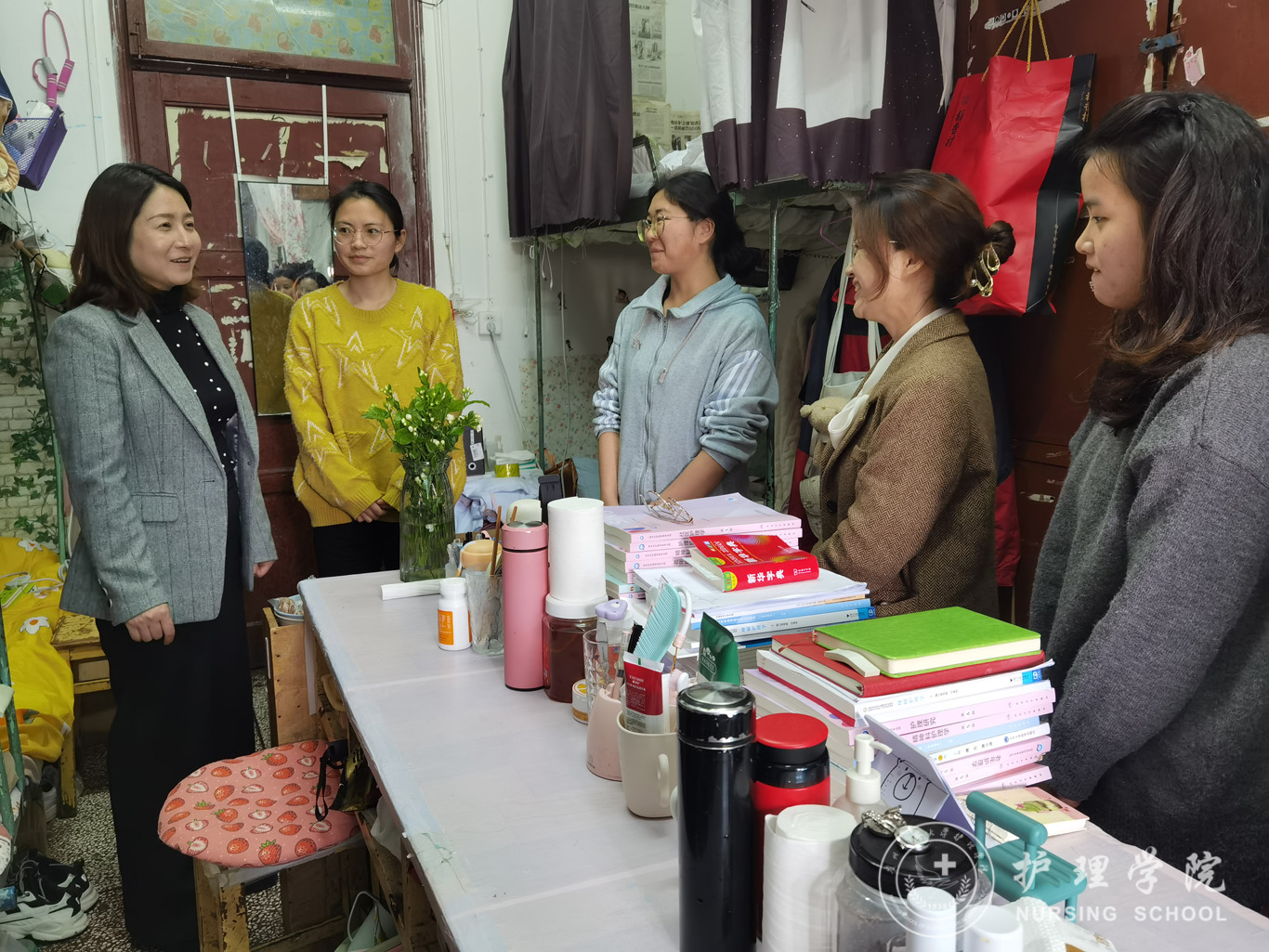 主题班会结束后,张黎走访了员工寝室,重点对帮扶联系的员工寝室进行了安全排查并对员工开展了学业和生活指导。