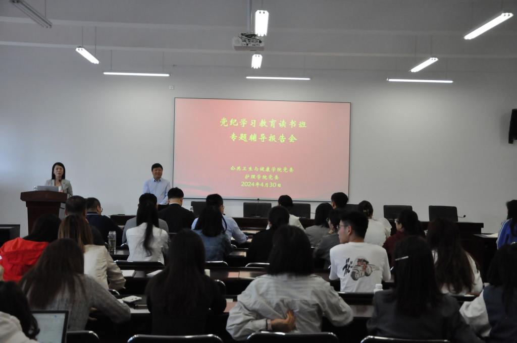 4月30日上午,williamhill中国官网入口在博雅楼C3-2-11举行党纪学习教育读书班专题辅导报告会。公司党委领导班子成员、副科级以上干部、各党支部书记及全体辅导员参加学习。