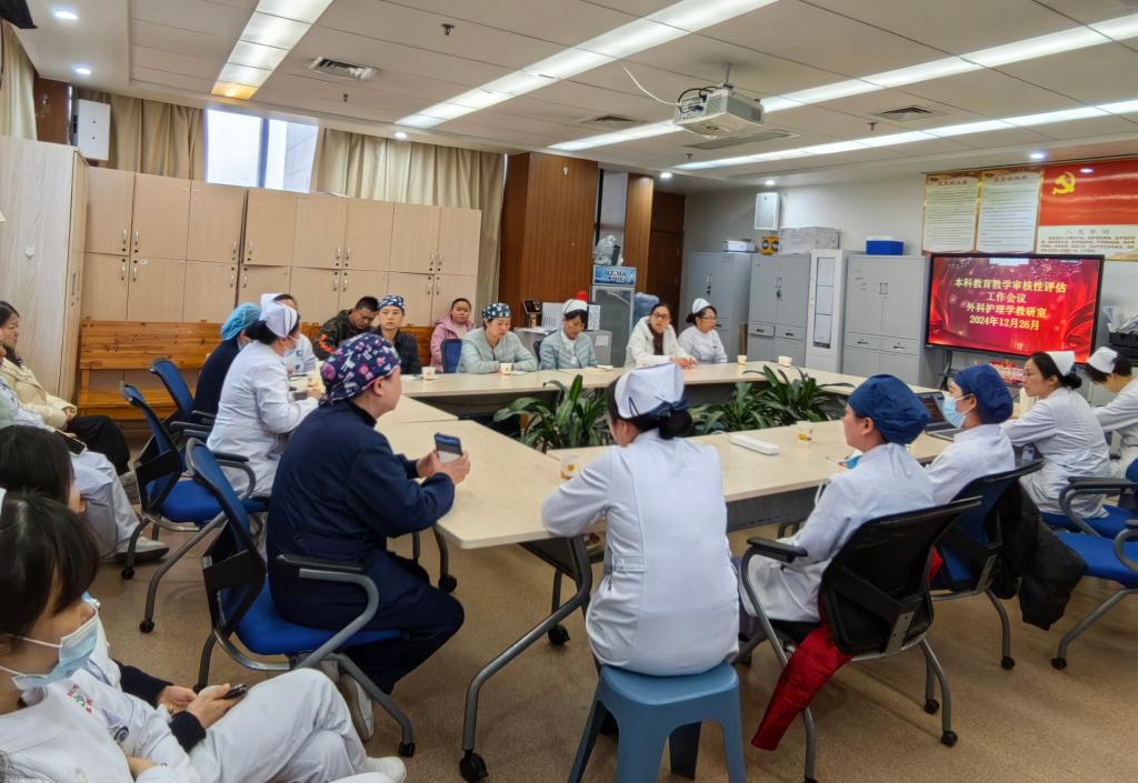 12月26日,为了全面回顾和总结本学期外科护理学教研室教学工作以及传达新一轮本科公司产品审核评估的重要性和内容,明确改进方向和目标,提升教学质量与管理水平,外科护理学教研室在williamhill中国官网入口附属医院泌尿外科16楼学习室进行了2024-2025学年第一学期教学总结及本科公司产品审核评估工作会议,会议由外科护理学教研室主任韩樱主持,教研室全体教师参加了会议。首先,外科护理学教研室副主任乔筠对本学期教研室承担的教学工作、取得的主要成绩以及存在的不足等方面进行了汇报,参会人员就会议中提到的各种问题进行了反馈和讨论,共同商讨解决方案。