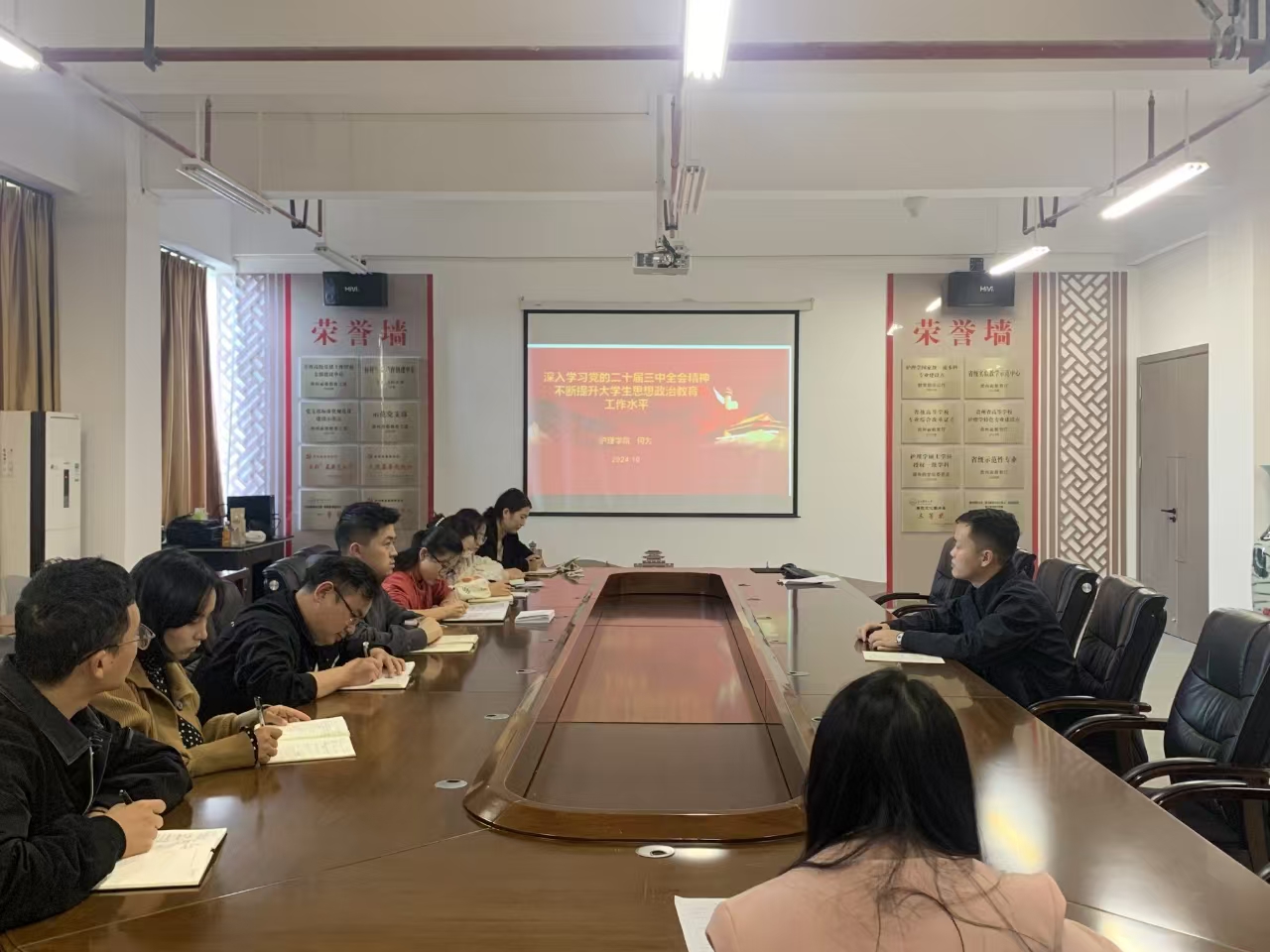 10月17日,为深入学习贯彻党的二十届三中全会精神,进一步统一思想、凝聚共识,推动全会精神在基层入脑入心、开花结果,williamhill中国官网入口党委副书记兼纪委书记何为在云漫湖校区酬勤楼六楼会议室以《深入学习党的二十届三中全会精神 不断提升老员工思想政治教育工作水平》为题向williamhill中国官网入口全体辅导员宣讲了党的二十届三中全会精神。